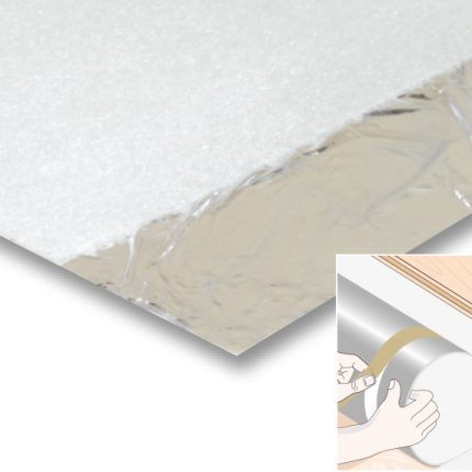 2mm polyethylene foam underlay with built-in silver foil moisture barrier and self-adhesive overlap. Silverlay wood and laminate underlay is composed of a polyethylene foam, which is laminated with an integral overlapping silver metalised polypropylene film damp proof membrane of 20 micron.